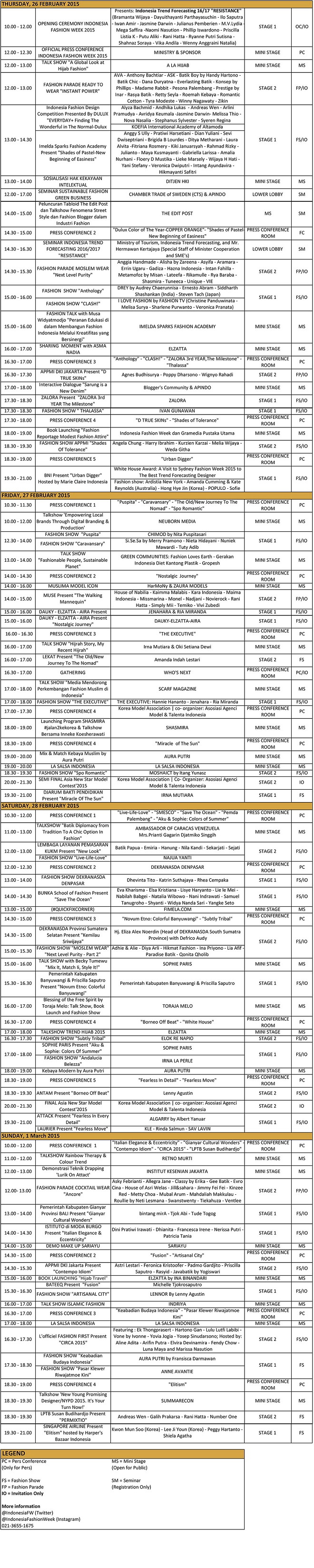 Jadwal Indonesia Fashion Week 2015Tanggal : 26 Februari 2015 – 1 Maret 2015